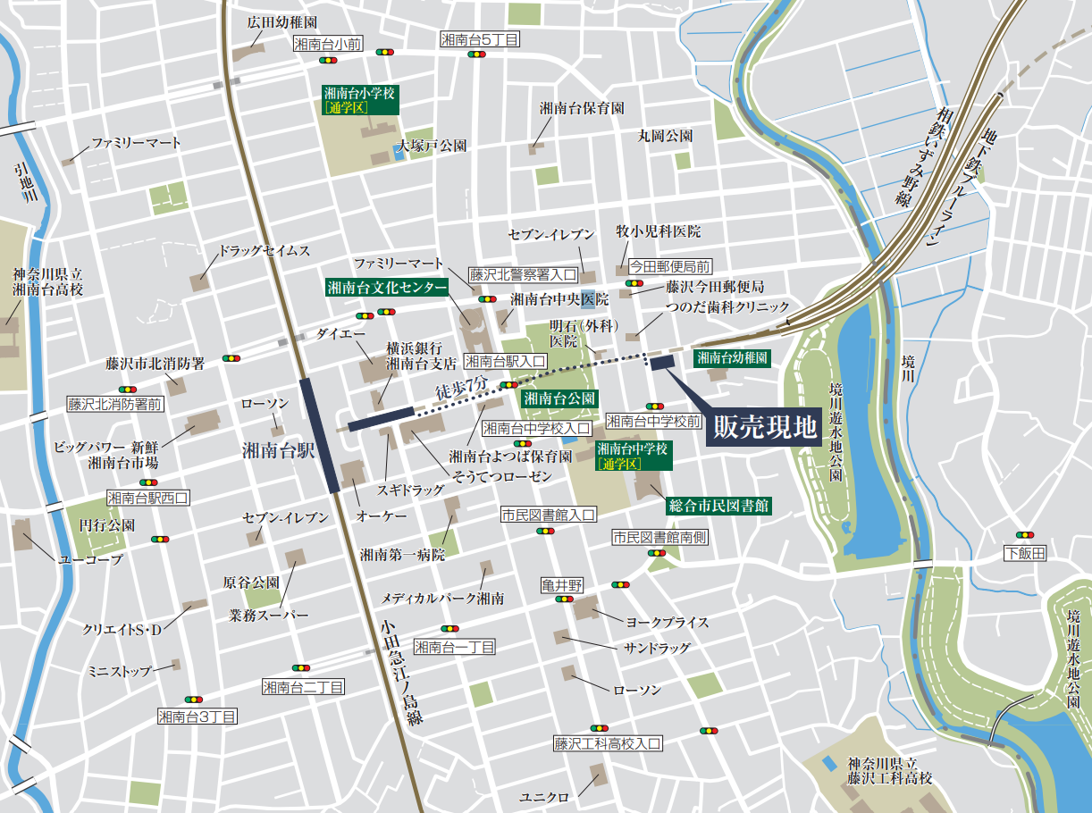 周辺には駅近ならではの様々な生活利便施設に加え、憩いの場「湘南台公園」にほど近く利便性と落ち着きのある住環境が広がっています。