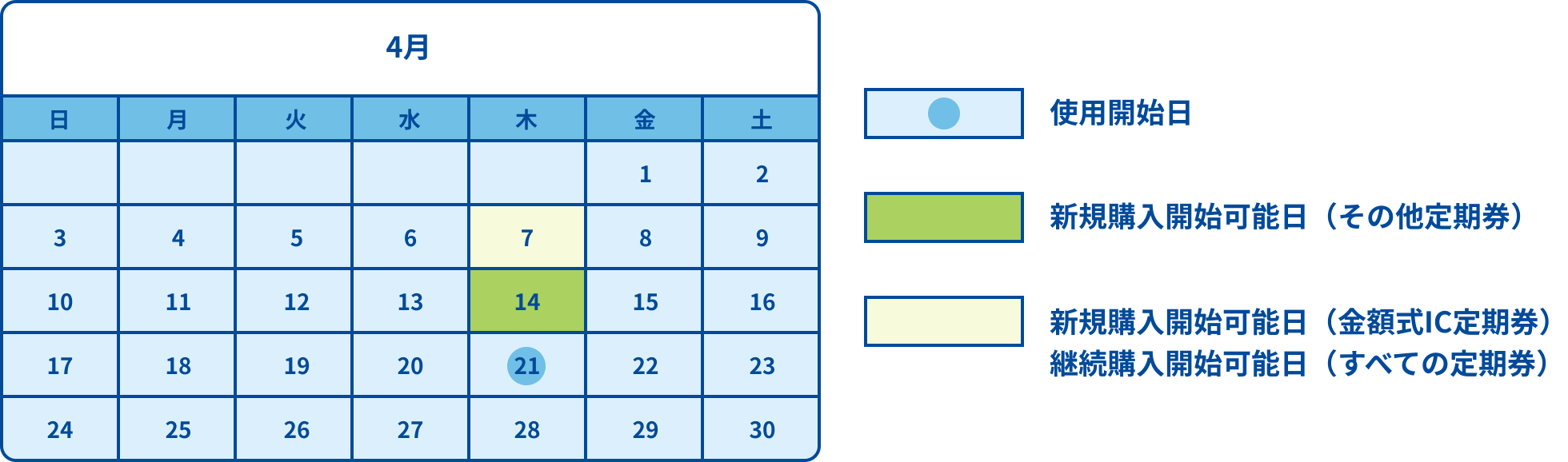 4月21日から使用開始の定期券を新規でご購入する場合の例